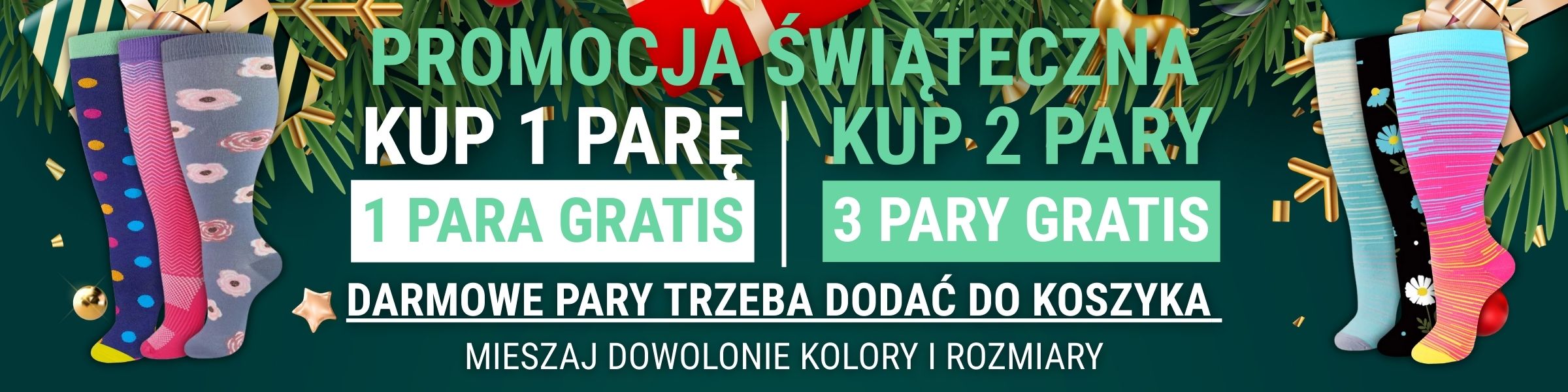 Nie zalecamy noszenia skarpetek kompresyjnych podczas snu, chyba że lekarz zaleci inaczej. Kompresja jest zaprojektowana do wspierania krążenia w ciągu dnia — podczas aktywności, stania lub siedzenia.