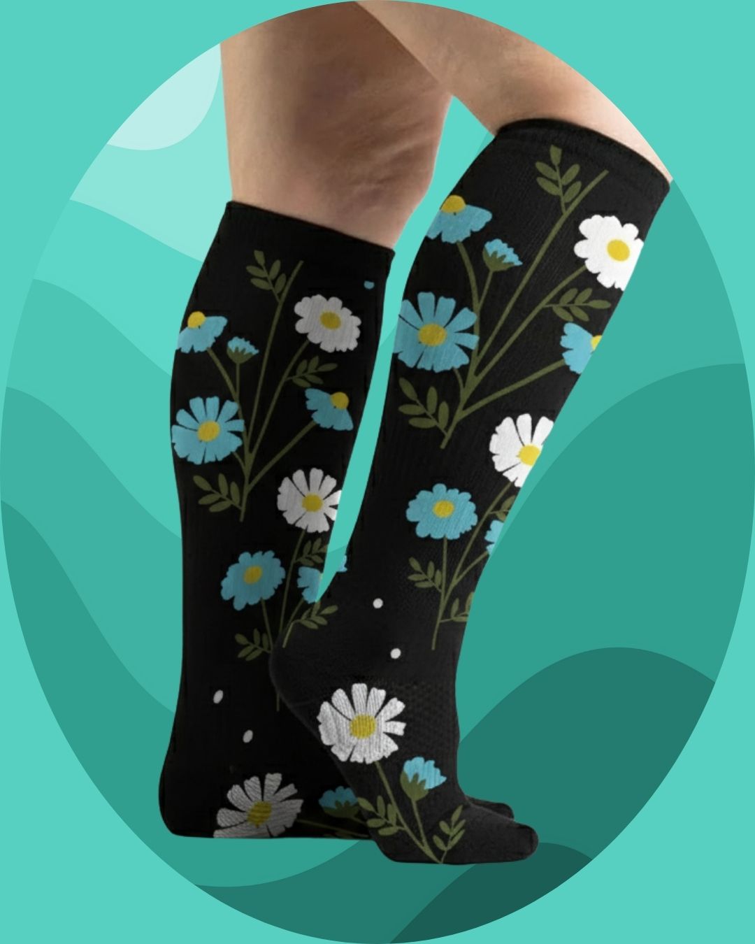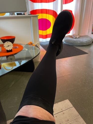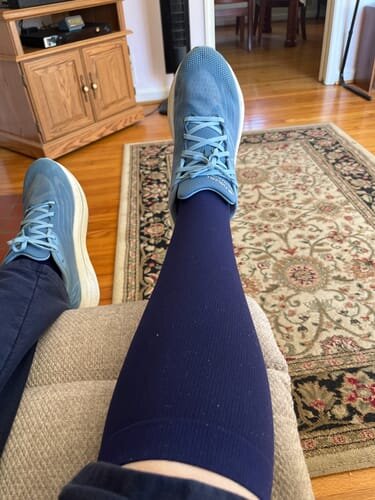 Rewelacyjne skarpetki! Łatwe do założenia i nie przegrzewają stóp — nawet w upale. Mam już 6 par i chcę więcej! Marta 61 l.Obwód łydki 53 cm, rozm. 2XL
